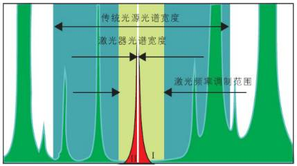 TDLAS作為一種分析氣體的新技術,由于半導體激光光譜寬度遠小于氣體吸收譜線的寬度,因此TDLAS是一種高分辨率的光譜吸收技術。與紅外的氣體分析儀相比,激光不受H2O、CO2及粉塵的影響,測量更準確,分辨率更高,壽命更長。