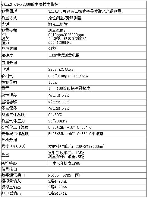 GALAS 6T-P2000激光氣體分析儀由于采用了激光半導體二極管吸收光譜(TDLAS)技術,從根本上解決了采樣預處理帶來的諸如響應滯后、維護頻繁、易堵易漏、易損件和運行費用高等各種問題,并具有如下特點:
