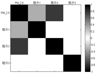 為了進一步研究PM2.5與大氣重金屬之間的關聯,并為PM2.5的控制提供方向,我們通過已經劃分的三個組分與大氣PM2.5濃度進行相關性分析。結果如圖5,發現該地區主要影響PM2.5的污染源為組分2(冶金工業廢氣)。