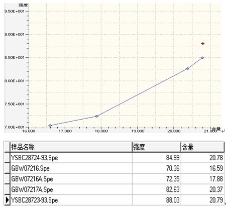② . 白云石國標樣Ca的工作曲線與相關數據