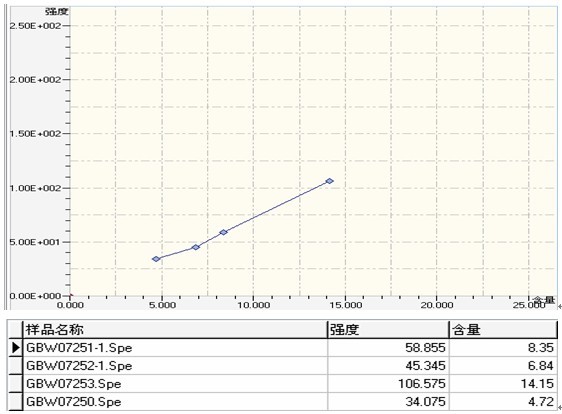 以下使用EDX 3600B型對螢石國標樣GBW07252實際測試的所得的譜圖,工作曲線等相關數據: