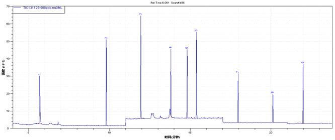 進樣口溫度:240℃;氣質接口溫度:240℃;離子源溫度:230℃;