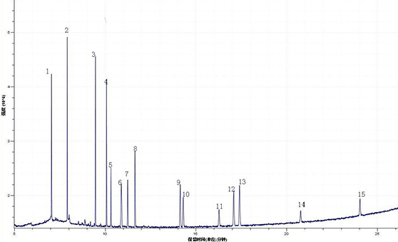 3.1 15種塑化劑混合標準溶液總離子流監測圖(TIC)如下所示: